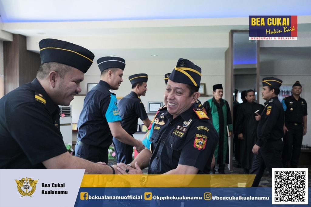 Kualanamu (13/09) Petugas Bea Cukai Kualanamu merupakan ujung tombak pengawasan dan pelayanan di Bandar Udara Internasional Kualanamu. Para petugas ini melakukan pengawasan dan pelayanan kepada para penumpang yang datang dan berangkat dari dan ke luar negeri melalui terminal Internasional Bandara Kualanamu, bandara kebanggaan warga Sumatera Utara. Tidak tanggung-tanggung para petugas ini secara bergantian setiap harinya selama 24 jam, 7 hari dalam seminggu dan 365 hari dalam satu tahun untuk memberikan dharma bakti terbaiknya untuk bangsa dan negara.