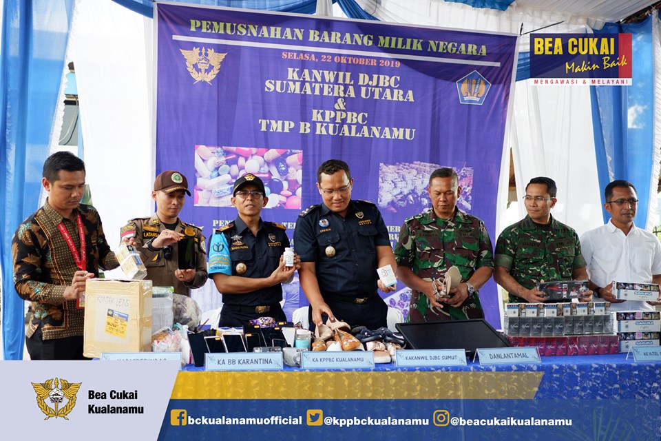 Pemusnahan ini merupakan hasil kerja keras bersama Direktorat Jenderal Bea dan Cukai bersama Aparat Penegak Hukum lainnya yaitu TNI, POLRI, Kejaksaan, Dinas Perindustian dan Perdagangan, Balai Besar Karantina dan Pertanian serta masyarakat, untuk terus berkomitmen melakukan penertiban terhadap penyelundupan impor barang ilegal khususnya di wilayah provinsi Sumatera Utara. (ran)