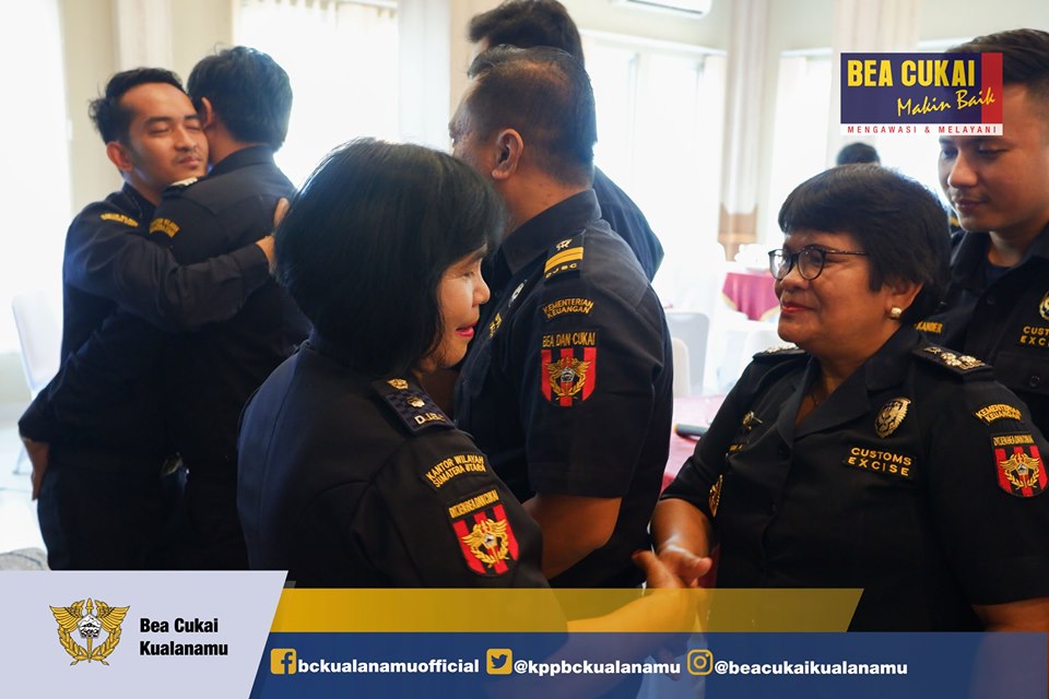 Kualanamu (28/06) – Bea Cukai Kualanamu mengadakan acara perpisahan atas pegawai yang pensiun dan mutasi pada Jumat (28/06/2019) di Jupiter Cafe Bea Cukai Kualanamu. Elseria Pasaribu yang memasuki masa purna bakti dan Jaya Sewiatan Gulo yang dimutasi ke Sekretariat Kementerian Keuangan di Jakarta per 1 Juli 2019.