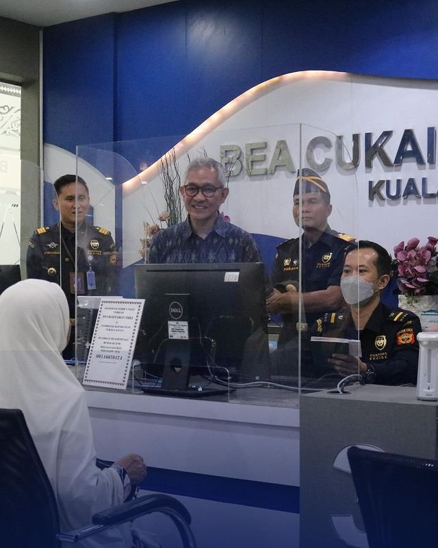 Dalam menyambut libur panjang Lebaran Idul Fitri 1444 H, Direktur Jenderal Bea dan Cukai, Askolani,meninjau kesiapan dari sisi pengawasan dan pelayanan Bea Cukai Kualanamu di Terminal Kedatangan Internasional Bandara Kualanamu(18/04).